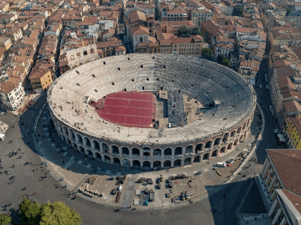 Figure 7. Roman amphitheatre built in Verona 30 CE. For modern opera performance the arena is divided into a seating area (left) and a stage (right). Photo: Arne Müseler / www.arne-mueseler.com, CC BY-SA 3.0 de